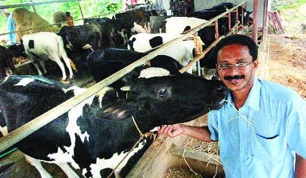 ഒരു പരീക്ഷണമെന്ന നിലയില് അഞ്ച് പശുക്കളുമായി തുടങ്ങിയ തൊഴുത്ത് ഇന്ന് കിടാക്കള് ഉള്പ്പെടെ ഇരുപത്തഞ്ചിലേറെ പശുക്കളെക്കൊണ്ട് നിറഞ്ഞുകഴിഞ്ഞു. സങ്കരയിനം പശുക്കളാണ് കൂടുതലും. 30 ലിറ്ററിലേറെ പാല് ചുരത്തുന്ന ഇത്തരം പശുക്കളുടെ വില 50.000ത്തിലേറെ വരും.