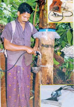 ഏതാനും മാസങ്ങള്ക്കുമുമ്പ് അഞ്ച് ബാറ്ററിയില് പ്രവര്ത്തിക്കുന്ന റബ്ബര്ടാപ്പിങ് യന്ത്രം രവി വികസിപ്പിച്ചു. ചെലവുകുറഞ്ഞതും റബ്ബര്മരത്തിന്റെ പട്ട കേടുകൂടാതെ ഒരേരീതിയില് ചീകി പാലെടുക്കാവുന്നതുമായ യന്ത്രം ഓട്ടോമാറ്റിക്കായി പ്രവര്ത്തിക്കുന്നതിനാല് കുട്ടികള്ക്കുപോലും ടാപ്പുചെയ്യാനാകും. പാല് നഷ്ടമാകുമെന്നോ മരം കേടാകുമെന്നോ ഭയവും വേണ്ട- രവി ഉറപ്പ് നല്കുന്നു.