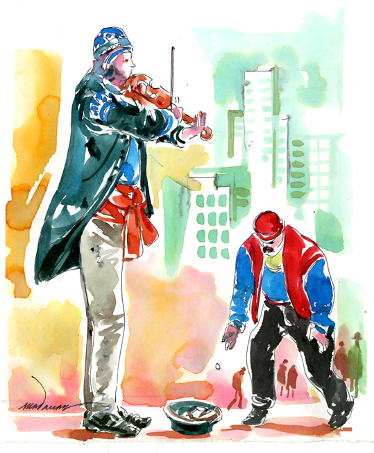 സൂര്യനസ്തമിക്കാത്ത ബ്രിട്ടീഷ് സാമ്രാജ്യത്തിന്റെ തലസ്ഥാനമായ ലണ്ടനില് ഒരു തെണ്ടിയുമില്ല എന്ന് നിങ്ങള് കരുതുകയാണെങ്കില് തെറ്റി. യൂറോപ്പിലും അമേരിക്കയിലും ഉള്ളത് പോലെ ലണ്ടനിലും ഒരാള് റെയില്വേസ്റ്റേഷനരികില് സംഗീതോപകരണം വായിച്ച് കൊണ്ട് നില്ക്കുകയാണെങ്കില് അയാള്ക്കടുത്തായി ഒരു തൊപ്പി നിലത്ത് വെച്ചിട്ടുണ്ടെങ്കില് ഉറപ്പിക്കാം അത് ഭിക്ഷാടനമാണ്. പെരുമ്പാവൂരിലെ തീപ്പെട്ടിപ്പാട്ടിന്റെ ലണ്ടന്പതിപ്പ്. ലണ്ടനിലെ തെണ്ടികളെപ്പറ്റി പഠിക്കാന് പോയ ഒരു പത്രപ്രവര്ത്തകന്റെ കഥ ഷെര്ലോക് ഹോംസ് സീരിസില് ഉണ്ട്. തെണ്ടികള്ക്ക് തന്നേക്കാള് വരുമാനം ഉണ്ടെന്ന് കണ്ട അയാള് പത്രപ്രവര്ത്തനം നിര്ത്തി ഭിക്ഷാടനം തുടങ്ങിയത്രേ. ഇപ്പോഴത്തെ മാര്ക്കറ്റ് സ്ഥിതി എന്താണാവോ...?