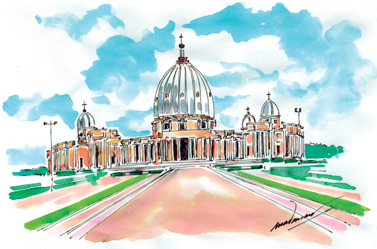 പശ്ചിമ ആഫ്രിക്കന് രാജ്യമായ ഐവറികോസ്റ്റിന്റെ തലസ്ഥാനമാണ് യാമസുക്രോ. പണ്ടും ഇപ്പോഴും ഇത് ഐവറികോസ്റ്റിലെ പ്രധാന നഗരം അല്ല. അത് അബിജാന് ആണ്. എന്നാല് , ഫ്രഞ്ചുകാരില് നിന്നും സ്വതന്ത്ര്യം കിട്ടിയതിനു ശേഷം മരണം വരെ ഐവറികോസ്റ്റ് ഭരിച്ച പ്രസിഡന്റ് ഫെലിക്സ് ജനിച്ചത് ഈ നഗരത്തില് ആണ്. അതുകൊണ്ടുതന്നെ അവിടം തലസ്ഥാനം ആക്കുന്നത് ഒരു നല്ല ഐഡിയ ആയി അദ്ദേഹത്തിനു തോന്നി. അദ്ദേഹത്തിന് അതുമാത്രം അല്ല തോന്നിയത് കോണ്കോര്ഡ് എന്ന പണ്ടത്തെ പ്രശസ്തമായ വിമാനത്തിനു വരെ ഇറങ്ങാന് പറ്റുന്ന ഒരുവിമാനത്താവളം പിന്നെ ലോകത്തില് ഏറ്റവും വലിയ കൃസ്ത്യന് പള്ളി.