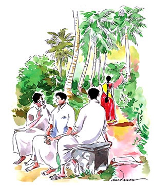 അപ്പോള് അരയാല്ത്തറകളില് പതിനാറുകാ കളിയുമായി ചെറുപ്പക്കാര് ആര്ത്തു.തണുത്ത മണലില് ഒറ്റയ്ക്ക് മലര്ന്നു കിടന്ന് ചിലര് മാനംനോക്കി.