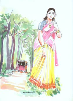 കുട്ടിക്കാലത്ത് മാഞ്ഞൂര് എന്ന കിഴക്കന് ഗ്രാമത്തിലേക്കുള്ള ഒരു യാത്ര ഇന്നും ഓര്ക്കാനാകുന്നത് ഒരു ദാവണിച്ചൊല്ലിയാണ്.റബ്ബര്പ്പാടങ്ങള്ക്കിടയിലൂടെ നീങ്ങുകയായിരുന്നു ബസ്സ്.ഇടയ്ക്കൊരു സ്റ്റോപ്പിനെ കടന്നു പോയപ്പോള് ഹാഫ്സാരിയുടുത്ത ഒരു മുതിര്ന്ന പെണ്കുട്ടി.ഒന്നേ കണ്ടുള്ളൂ.പക്ഷേ മധുരങ്ങള് നുണഞ്ഞു നടക്കാന് മാത്രം വളര്ച്ചയുള്ള ഒരു മനസ്സിനെ കോലുമിഠായി പോലെ രസിപ്പിച്ചു കളഞ്ഞു ആ ചേച്ചി.പിന്നോട്ടോടി മറഞ്ഞ കാഴ്ചയില് ഉറുമ്പു കടിച്ച നോവ്.തിരിച്ചറിവില്ലാത്ത ഒരു പത്തു വയസ്സുകാരനെ നിമിഷാര്ധം കൊണ്ട് പട്ടത്തിലേറ്റിപ്പറത്തിയ കാറ്റിന് എന്താണു പേര്.വയസ്സുകള് പിന്നെയും പലപല ബസ്സുകള് പോലെ ഓടിയിട്ടും ആ സാരിത്തുമ്പ് മറന്നുപോകാത്തത് എന്തുകൊണ്ടാണ്..?