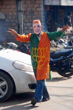 ന്യൂഡല്ഹി: നാല് സംസ്ഥാനങ്ങളില് ബി.ജെ.പി. നേടിയ വിജയം പാര്ട്ടിയുടെ പ്രധാനമന്ത്രി സ്ഥാനാര്ഥി നരേന്ദ്ര മോദിയുടെ ജനപ്രീതിക്കുള്ള കൈയൊപ്പുചാര്ത്തലായി. തിരഞ്ഞെടുപ്പ് നടന്ന നാലില് മൂന്നിടത്തും വ്യക്തമായ ഭൂരിപക്ഷവും ഡല്ഹിയില് ഏറ്റവും വലിയകക്ഷിയെന്ന സ്ഥാനവും നേടാനായതിന്റെ 'ഖ്യാതി'നരേന്ദ്ര മോദിക്ക് സമ്മാനിക്കുകയാണ് ബി.ജെ.പി. നേതൃത്വം.