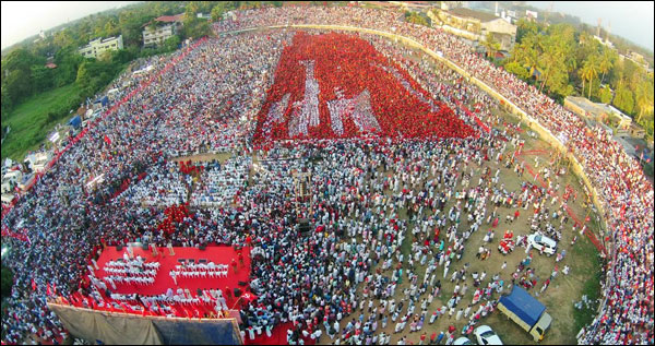 ചുവപ്പുസേനാ മാര്ച്ചും പ്രകടനവും വന്നുകയറി അഞ്ചുമണിയായപ്പോള്ത്തന്നെ സ്റ്റേഡിയം നിറഞ്ഞുകവിഞ്ഞു. പൊതുസമ്മേളനം ആറുമണികഴിഞ്ഞാണ് തുടങ്ങിയത് അപ്പോഴും ആയിരക്കണക്കിന് പ്രവര്ത്തകര് വഴികളില് പ്രകടനങ്ങളായി നില്ക്കുകയായിരുന്നു.
