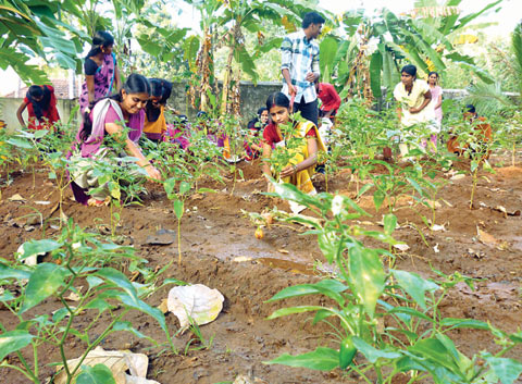 ഔഷധത്തോട്ടത്തിലും പൂന്തോട്ടത്തിലുമൊതുങ്ങേണ്ട സ്കൂള് സിലബസ്സിലെ പ്രവൃത്തിപരിചയ ക്ളാസാണ് പച്ചക്കറിക്കൃഷിയിലേക്കും വ്യാപിപ്പിച്ചത്. മണ്ണിന്റെ ഫലഭൂയിഷ്ഠത ഒലിച്ചുപോകാതിരിക്കാന് കൃഷിയിടത്തിന്റെ അരികുകളില് മാതളം, മാവ് തുടങ്ങിയ ഫലവൃക്ഷത്തെകള് നട്ട് സംരക്ഷണമൊരുക്കി. പ്രത്യേക രീതിയില് ബണ്ടുകള് തീര്ത്തപ്പോള് നനയ്ക്കുന്ന വെള്ളവും സ്ഥത്തുതന്നെ ആഴ്ന്നിറങ്ങി.