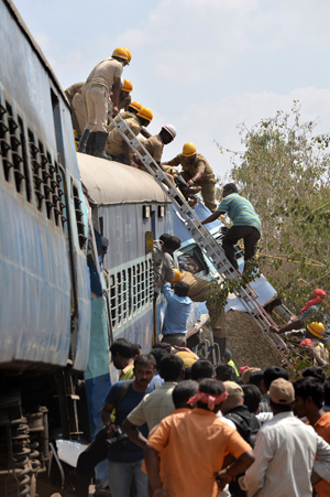 എന്നാല് പൊട്ടിപ്പൊളിഞ്ഞ ബോഗിക്കുള്ളിലേക്ക് പ്രവേശിക്കാന് പോലും കഴിയുമായിരുന്നില്ല. പലരും നിസ്സഹായരായി. യാത്രക്കാര് മരിച്ച ഡി എട്ടാം നമ്പര് ബോഗിയില് 60 യാത്രക്കാരുണ്ടായിരുന്നുവെന്നാണ് യാത്രക്കാരുടെ മൊഴി. ഡി ഒമ്പതാം നമ്പര് ബോഗി ഡി എട്ടാം നമ്പര് ബോഗിയിലേക്ക് ഇടിച്ച് കയറി. ഇടിയുടെ ആഘാഷത്താല് ബോഗി തകര്ന്നപ്പോള് പലരും സീറ്റുകള്ക്കിടയില് ഞെരിഞ്ഞമര്ന്നു. ശരീരാവയവങ്ങള് അറ്റ് പോയ മൃതദേഹങ്ങളും കൂട്ടത്തിലുണ്ടായിരുന്നു. ഡി എട്ടാം നമ്പര് ബോഗിയിലുണ്ടായിരുന്ന യാത്രക്കാരാണ് മരിച്ചത്. എന്നാല് നേരത്തേ രക്ഷപ്പെടുത്താന് കഴിയുമായിരുന്നെങ്കില് പലരുടെയും ജീവന് രക്ഷിക്കാന് കഴിയുമായിരുന്നുവെന്ന് ബോഗിയിലുണ്ടായിരുന്ന മലയാളിയായ സേതുകുമാര് പറഞ്ഞു. പലര്ക്കും ഒന്നും ചെയ്യാന് കഴിയുമായിരുന്നില്ല. ഡി ഒമ്പതാം നമ്പര് ബോഗിയോടടുത്ത് ഡി എട്ടിലുണ്ടായിരുന്ന യാത്രക്കാര് സീറ്റുകള്ക്കിടയില് ഞെരിഞ്ഞമര്ന്നു. ചെയര്കാറായിരുന്നതിനാല് സീറ്റുകള് ഞെരിഞ്ഞമര്ന്നതിനാല് കുടങ്ങിപോയ യാത്രക്കാര്ക്ക് ഒന്നും ചെയ്യാന് കഴിഞ്ഞില്ല. അപകടം 7.45നാണ് നടന്നതെങ്കിലും ആദ്യ ആംബുലന്സ് എത്തിയത് മുക്കാല് മണിക്കൂര് കഴിഞ്ഞതിന് ശേഷമാണ്. എന്നാല് രക്ഷാപ്രവര്ത്തകര് എത്താന് പിന്നീടും സമയം എടുത്തു. അപകടം നടന്ന സ്ഥലം കണ്ടെത്തുന്നതിനുള്ള ബുദ്ധിമുട്ടും പ്രശ്നത്തിന് കാരണമായി.