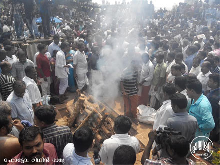 രാവിലെ 11.15 ഓടെ മൃതദേഹം വഹിച്ചുകൊണ്ടുള്ള വിലാപയാത്ര പയ്യാമ്പലത്തെത്തി. കേരളത്തിന്റെ വിവിധ ഭാഗങ്ങളില്നിന്നെത്തിയ രാഷ്ട്രീയ നേതാക്കളടക്കമുള്ള വന് ജനാവലിയുടെ സാന്നിധ്യത്തില് ആയിരുന്നു സംസ്കാര ചടങ്ങുകള്. മന്ത്രിമാരായ കെ സി ജോസഫ്, കെ പി മോഹനന് തുടങ്ങിയവര് സംസ്കാര ചടങ്ങിന് സാക്ഷികളായി.