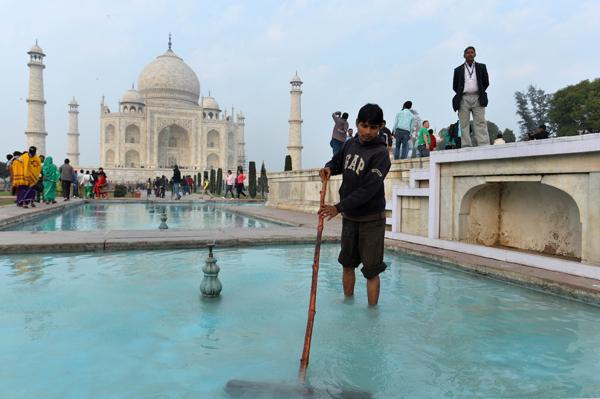 ആഗ്രയിലേക്ക് ചെന്നാല് നിത്യസ്നേഹത്തിന്റെ പ്രതീകമായ താജ്മഹലിലേക്കുള്ള റോഡുകള് മുട്ടുകുത്തിയിരുന്ന് ഉരച്ചുകഴുകുന്ന രാംജീതിനെപ്പോലുള്ളവരെ കാണാം. 600 ലേറെ തൊഴിലാളികളെയാണ് റോഡുകള് കഴുകി വൃത്തിയാക്കാന് മാത്രം നിയോഗിച്ചിരിക്കുന്നത്.