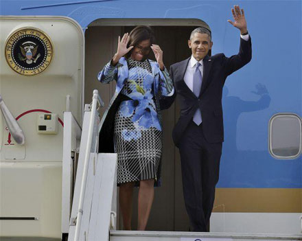 ന്യൂഡല്ഹി: ബരാക്ക് ഒബാമയ്ക്കൊപ്പം ഭാര്യ മിഷേല് ഇന്ത്യയിലെത്തിയത് ഇന്ത്യന് വംശജന് പ്രത്യേകമായി ഡിസൈന് ചെയ്ത ഫ്രോക്കും ധരിച്ച്. നീല പൂക്കള് ആലേഖം ചെയ്ത മുട്ടോളമെത്തുന്ന ഫ്രോക്ക് മിഷേലിനു വേണ്ടി ഇന്ത്യക്കാരനായ ബിഭു മൊഹാപാത്രയാണ് രൂപകല്പന ചെയ്തത്. നിറത്തിനും ഡിസൈനിനും ചേര്ന്ന ഓവര്ക്കോട്ടും ഫ്രോക്കിന്റെ മോടി കൂട്ടി.