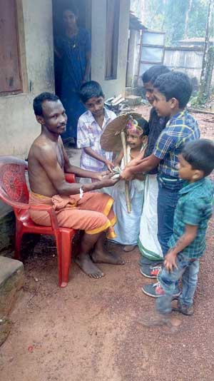 ശാസ്താംകോട്ട: മാവേലിത്തമ്പുരാന്റെ വേഷംകെട്ടി നാട്ടിലിറങ്ങി കിട്ടിയ തുക കുട്ടികള് വൃക്കരോഗചികിത്സയ്ക്ക് കൈമാറി.