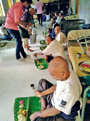 കൊല്ലം മുണ്ടയ്ക്കല് അഗതിമന്ദിരത്തിലാണ് ഓണസദ്യ ഒരുക്കിയത്. ആശ്രാമം, ചിന്നക്കട, ബീച്ച്, കന്പോളം, ഗവ. ഹോസ്പിറ്റല് പരിസരം എന്നിവിടങ്ങളിലെ ഭിക്ഷാടകര്ക്കും വിപുലമായ ഓണസദ്യ നല്കി.