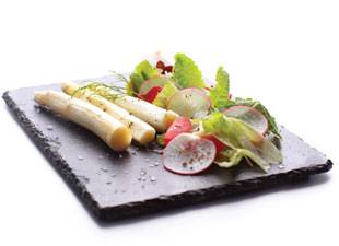 ശതാവരിക്കിഴങ്ങിന്റെ തൊലി നീക്കിയശേഷം പഞ്ചസാര, വിനാഗിരി, ഉപ്പ,് ബെറീസ് എന്നിവ ചേര്ത്ത് തിളപ്പിച്ച വെള്ളത്തിലിട്ട് 12 മിനുട്ട് ചെറുതീയില് വേവിക്കുക. ശേഷം ഐസ്കട്ടയ്ക്ക് പുറത്ത് വെച്ച് തണുപ്പിച്ചെടുക്കുക. റാഡിഷ്, ലെറ്റിയൂസ് എന്നിവ അരിഞ്ഞതും ഐസ്കട്ടയ്ക്ക് മേല്വെച്ച് തണുപ്പിച്ചെടുക്കുക. കറുത്ത സ്ലേറ്റ് ബോര്ഡിന് മുകളില് ശതാവരിക്കിഴങ്ങ് വെച്ച് മേലേ ഉപ്പ്, കുരുമുളക് എന്നിവ ഒഴിച്ചുള്ള ചേരുവ വെച്ച് അലങ്കരിക്കുക. ശേഷം ഉപ്പ്, കുരുമുളക് എന്നിവ വിതറി ഉപയോഗിക്കാം.
