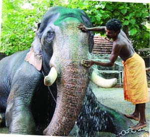 ആളുകളെ പോലെ ആനകളും പൂരം ഒരുക്കത്തിലാണ്. ഏറെ സമയമെടുത്തുകൊണ്ടുള്ള കുളി, നഖം മിനുക്കല്, പൊട്ടുപോലുള്ള അലങ്കാരങ്ങള്, കഴുത്തിലെ മണിപോലുള്ള ആഭരണങ്ങള് തുടങ്ങിയവയെല്ലാമായാണ് ആനകള് പൂരത്തിന് ഇറങ്ങുക. വിവിധ സ്ഥലങ്ങളില് ആനകളെ ഇത്തരത്തില് ഒരുക്കിക്കൊണ്ടിരിക്കുകയാണ്. പൂരത്തിന്റെ ദിവസങ്ങള്ക്കുമുമ്പേ ഇതില് പങ്കെടുക്കുന്ന ആനകള്ക്ക് ദിവസേനയുള്ള കുളി ഏര്പ്പെടുത്തും. മൂന്നും നാലും മണിക്കൂറുകള് നീളും ഈ ആനക്കുളിക്ക്. ചെളിമൂലം മങ്ങിയ കറുപ്പഴക് വീണ്ടെടുക്കാന് ഇത്തരത്തിലുള്ള കുളിക്ക് സാധിക്കും. ഭരണി ഉണ്ടാക്കാനുപയോഗിക്കുന്ന കല്ല് ഉപയോഗിച്ചാണ് ആനയെ ഉരച്ചെടുക്കുക. കുളി കഴിഞ്ഞാല് പിന്നെ അലങ്കാരം. കണ്ണെഴുതില്ല, പക്ഷെ പൊട്ടുതൊടും. മസ്തകത്തിന് നടുക്കും ഇരുചെവികളിലും വാലിലും പിന്കാലിലും എല്ലാം ഇത്തരത്തില് പൊട്ടുകുത്തും. ആദ്യകാലത്ത് അരിമാവാണത്രേ ഉപയോഗിച്ചിരുന്നത്. പിന്നീട് ഇത് കുങ്കുമവും മറ്റുമായി. ദേഹത്തെ രോമങ്ങള് വെട്ടിശരിയാക്കാനും ശ്രദ്ധിക്കും. വാല് നിലത്തിഴയുന്നുണ്ടെങ്കില് മാത്രം മുറിക്കും. കാലിന്റെ അടിഭാഗം വരെ വളരെ വൃത്തിയാക്കും. ആനയുടെ കൊമ്പാണ് പിന്നെയുള്ള ആകര്ഷണകേന്ദ്രം. അതും പരമാവധി മിനുക്കി കൂര്പ്പിച്ചെടുക്കും. മണിയും ചങ്ങലയും എല്ലാം പിന്നീട് ഇവയ്ക്ക് അലങ്കാരങ്ങളാകും.