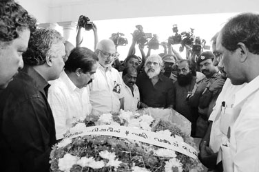 പോലീസിന്റെ ഔദ്യോഗിക ബഹുമതികള് ഏറ്റുവാങ്ങിയ മൃതദേഹത്തില് ജീവിതത്തിന്റെ നാനാതുറകളില്പ്പെട്ടവര് പുഷ്പചക്രങ്ങള് അര്പ്പിച്ചു.