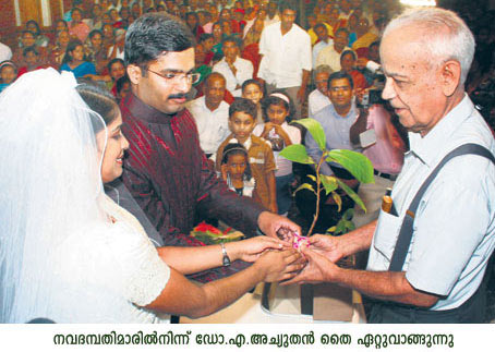 പരിസ്ഥിതിസ്നേഹിയായ ഡോ. എ. അച്യുതനാണ് നവദമ്പതിമാരുടെ പക്കല്നിന്ന് ആദ്യം വൃക്ഷത്തൈ ഏറ്റുവാങ്ങിയത്. അതിന് ശേഷം പരിസ്ഥിതി സംരക്ഷണത്തെക്കുറിച്ച് അദ്ദേഹം ഒരു ലഘുപ്രഭാഷണവും നടത്തി.