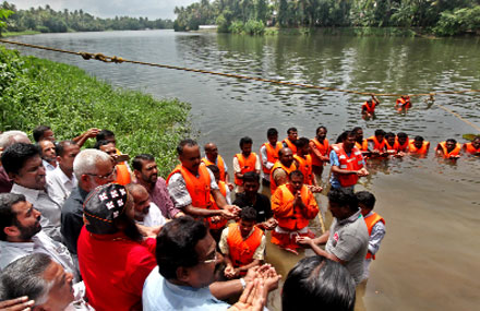 കടുങ്ങല്ലൂര്: 'പെരിയാര് മലിനീകരണം പൂര്ണമായും അവസാനിപ്പിക്കണം. നദിയുടെ നിര്മലത പരിപൂര്ണമായി വീണ്ടെടുക്കുന്നതുവരെ, അതിന്റെ സമഗ്രതയില് സംരക്ഷിക്കുന്നതുവരെ മലിനീകരണത്തിനെതിരെയുള്ള സമരം തുടരുകതന്നെ ചെയ്യും' ബസേലിയോസ് മാര്ത്തോമാ യാക്കോബ് പ്രഥമന് കാതോലിക്കാ ബാവ പെരിയാറിലിറങ്ങി വെള്ളം കൈക്കുമ്പിളിലെടുത്ത് ഈ പ്രതിജ്ഞ ചൊല്ലിയപ്പോള് നൂറുകണക്കിനുപേര് ഒരേമനസ്സോടെ അതേറ്റുചൊല്ലി. മരണത്തോട് മല്ലടിക്കുന്ന ഒരു നദിക്ക് പുതുജീവനേകാനുള്ള തുടക്കമാകുകയായിരുന്നു പെരിയാര് മലിനീകരണവിരുദ്ധ സംയുക്ത സമരസമിതിയുടെ നേതൃത്വത്തില് നടത്തിയ ഈ ജലസത്യാഗ്രഹം.