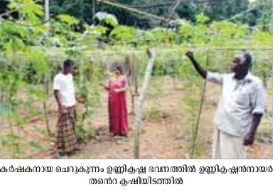 ഉണ്ണികൃഷ്ണന്നായര് തന്റെ കൃഷിയിടത്തില് ഒരുക്കിയിട്ടുണ്ട്. ഓണവിപണി ഉള്െപ്പടെയുള്ളവ ലക്ഷ്യമിട്ടാണ് ഇപ്പോള് കൃഷിയിറക്കിയിട്ടുള്ളത്.